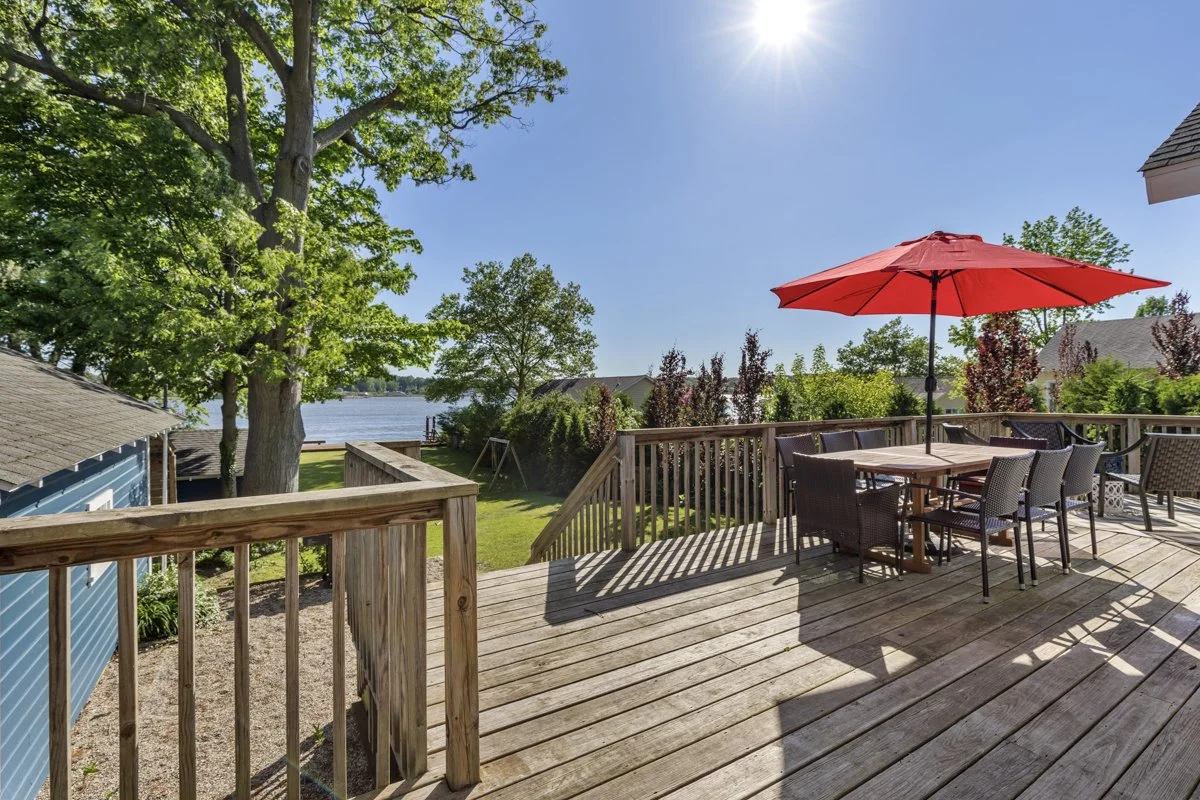 This inviting waterfront home with panoramic Lake Kalamazoo views offers seclusion and solitude from life's stresses. With a furnished back deck for relaxing, a swing set in the large fenced in back yard for the kids to play or dog to run, and a private dock for fishing, to dock your boat, or to launch your kayak or SUP.