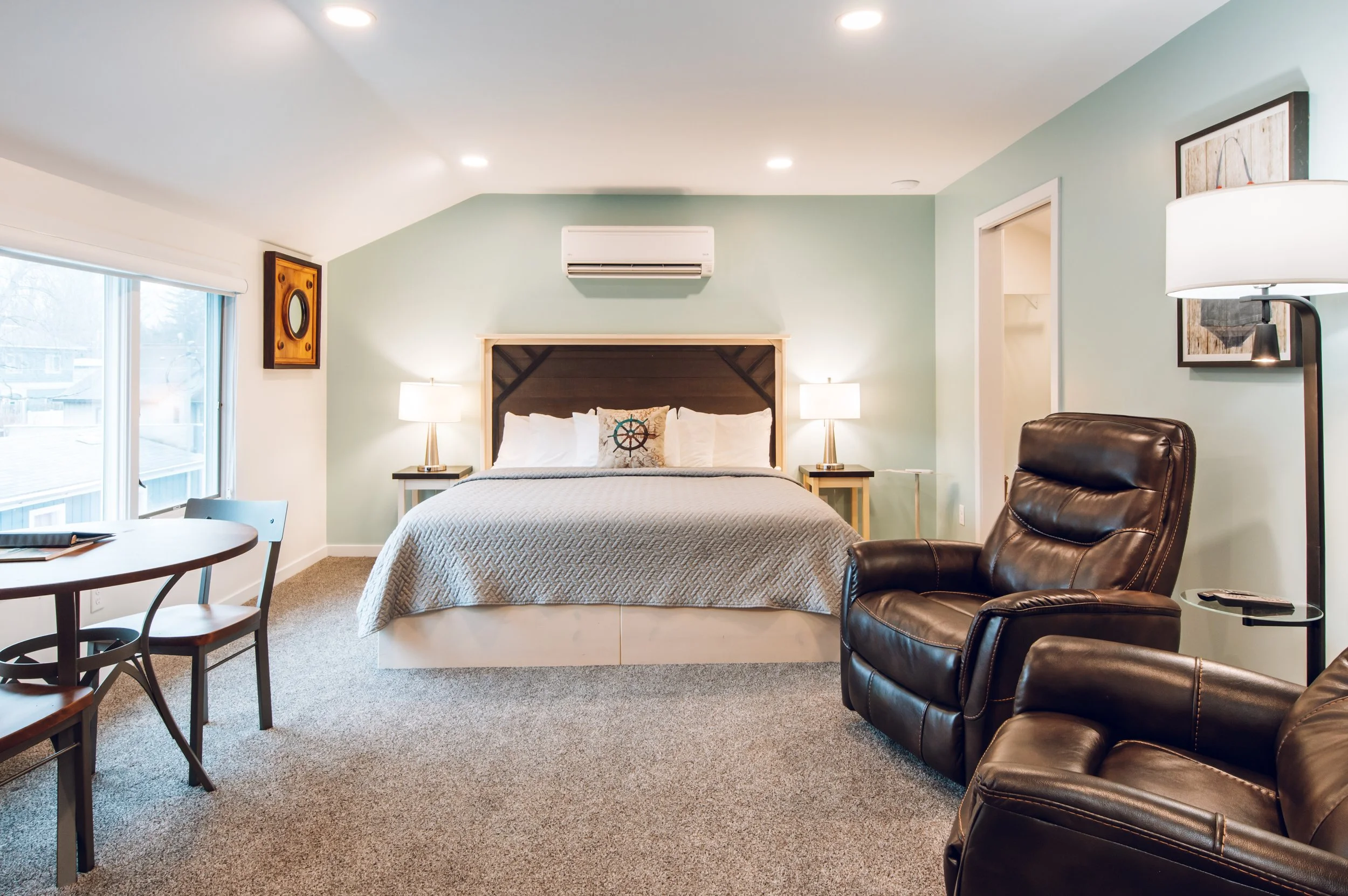 This upstairs studio apartment can be rented on its own, or as an additional master suite to the Penthouse. Located on the second floor of the Star of Saugatuck building, this apartment is right downtown and walking distance to all things Downtown Saugatuck. A completely remodeled space with a kitchenette, mini fridge, private bathroom with walk-in shower, living and dining areas and the views from here are pretty speculator!